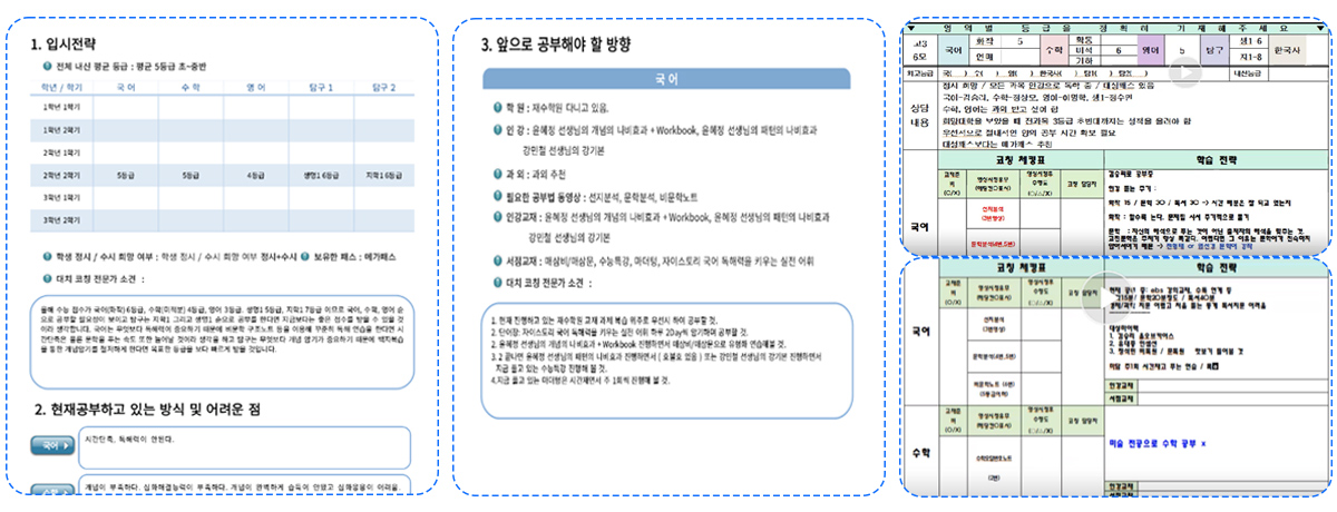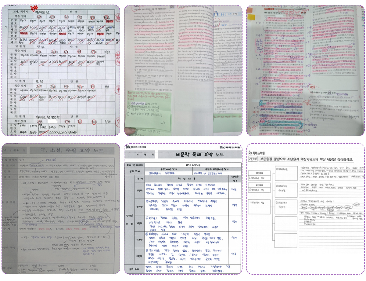 실제 코칭 받은 학생들의 공부컷 예시 입니다. 일부만 기재 합니다.