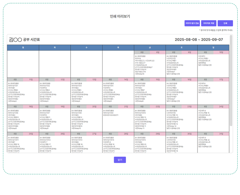 학생별 약점 분석 후 맞춤 시간표 작성주간/월간 학습계획 수립